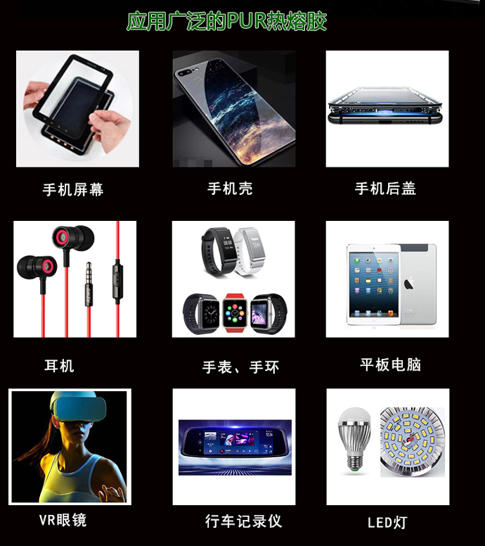 PUR熱熔膠固化物為聚氨酯橡膠,其粘接強(qiáng)度、耐溶劑、耐油漆、耐熱、耐水解等性能明顯優(yōu)于EVA熱熔膠、水性或溶劑型膠水。